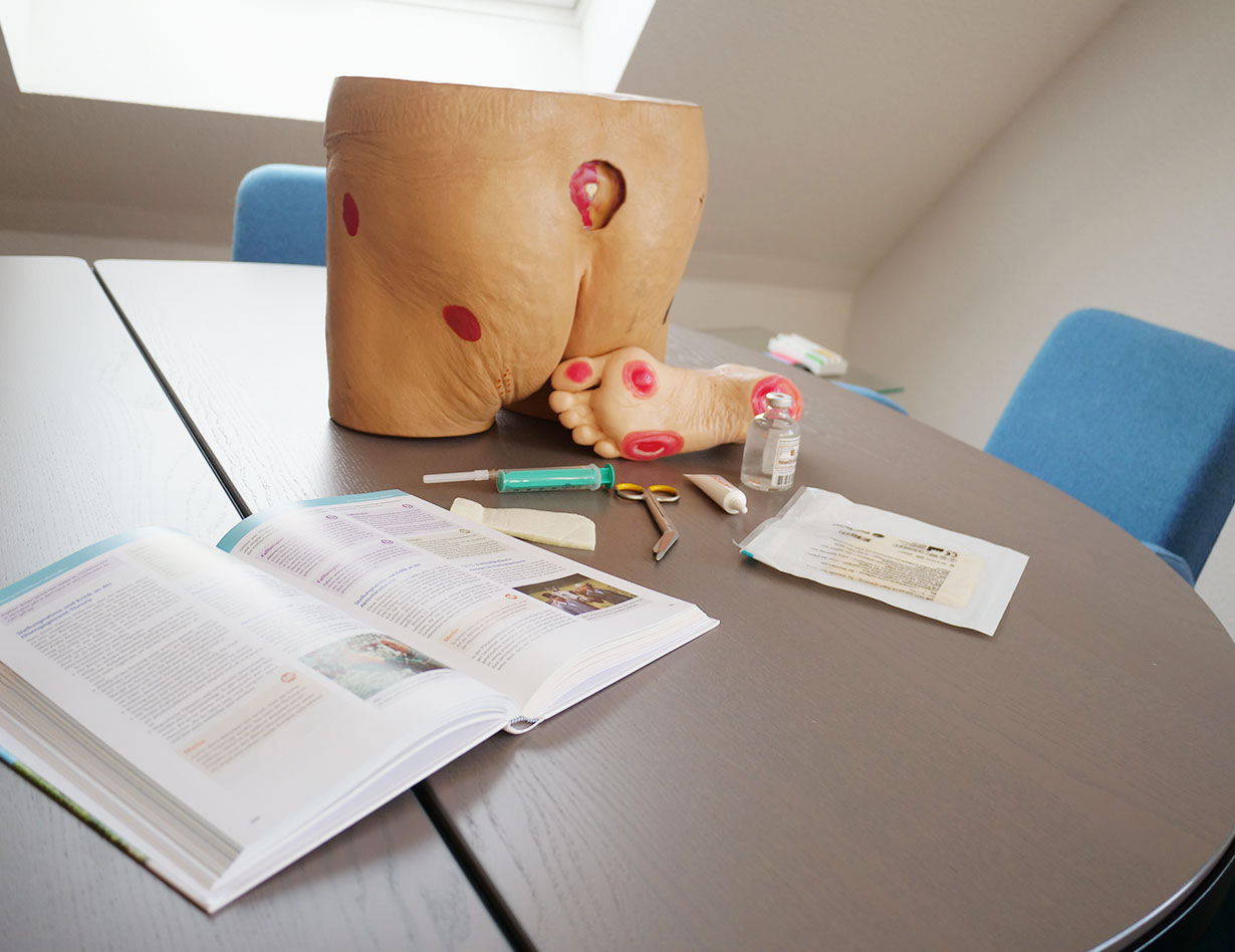 Die Einheit umfasst 60 Stunden und ist auf die Behandlung von Kindern und alten Leuten aufgeteilt. Es geht vor allem um die Förderung des eigenverantwortlichen Handels in Akutsituationen.